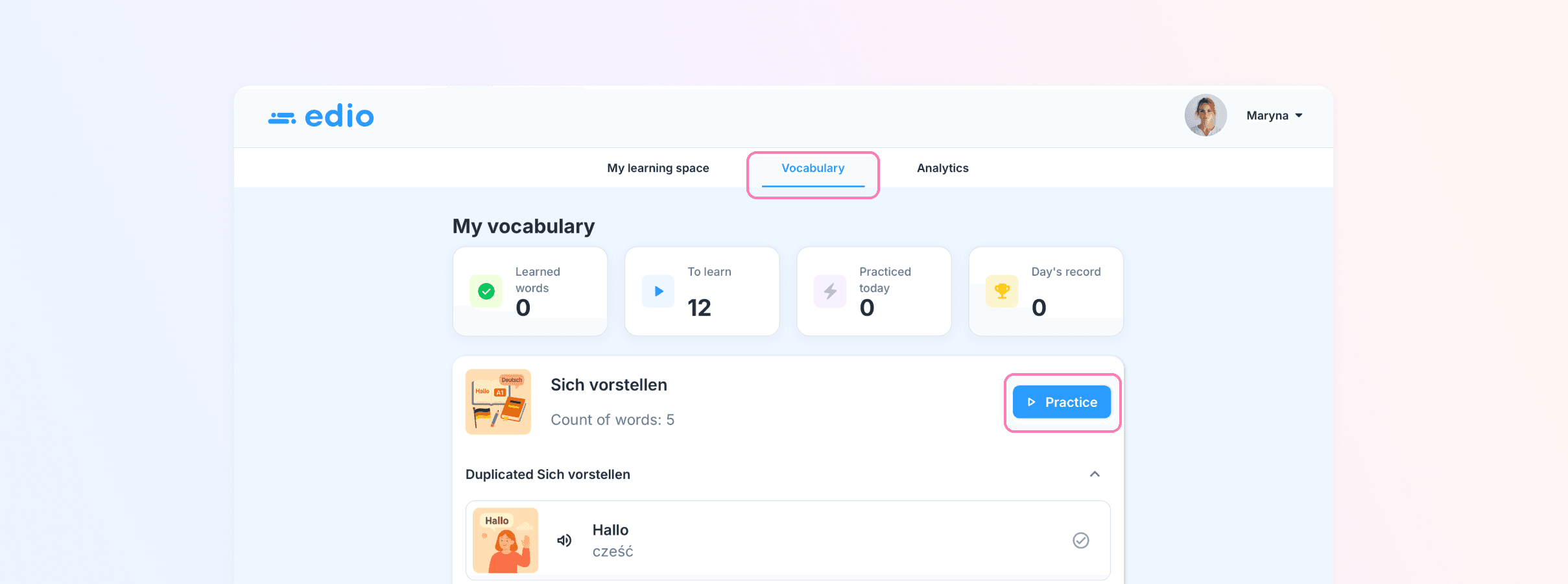 To start practicing, students need to go to the “Vocabulary” section in their profile.
