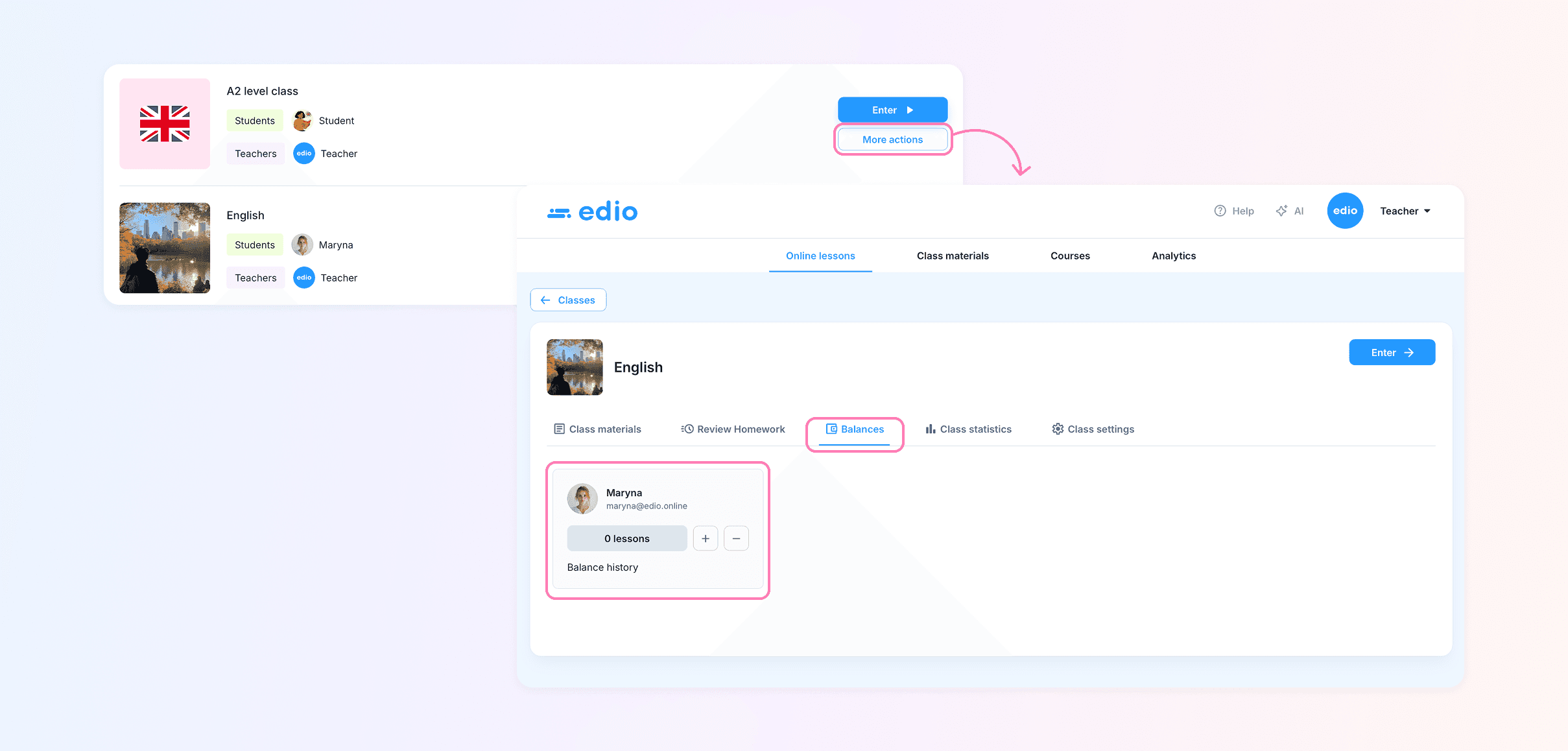 We are introducing a new feature for language school management — the paid lesson balance system.